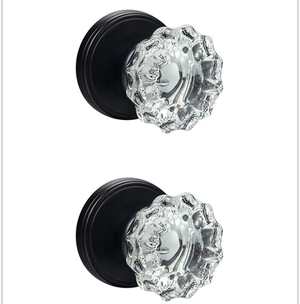 COOLNEWS Crystal Glass Door Knobs (Dummy 2 Pack, Matte Black)
